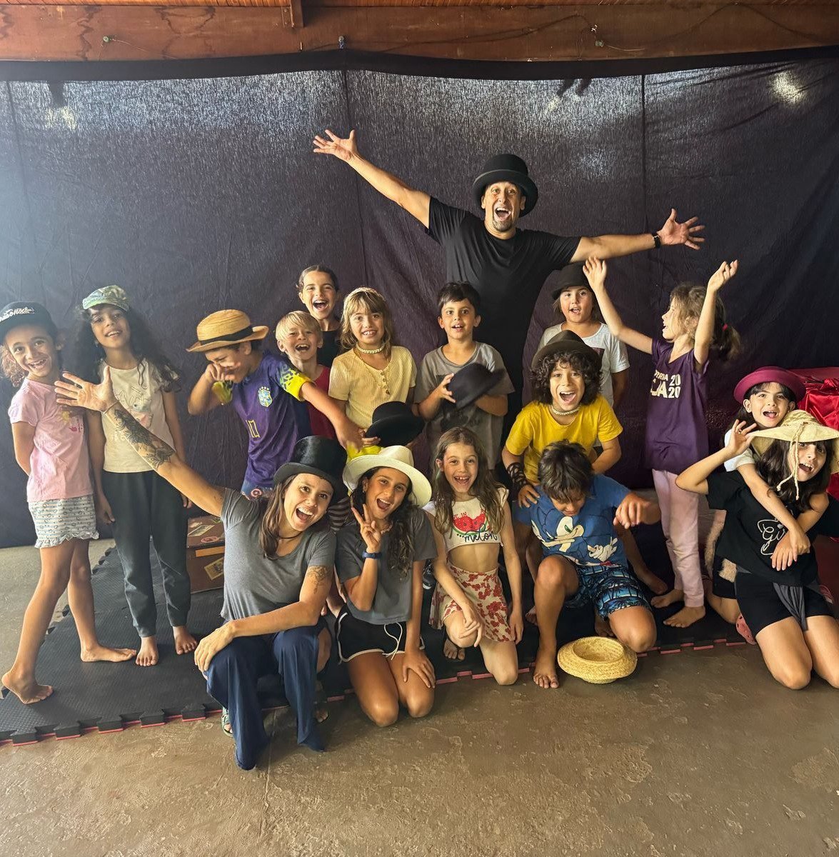 Depois de imergir no universo da fotografia a partir da cartola, objeto disparador do 4º ano, o projeto das crianças tomou rumo em direção à história do cinema, focando na Era do Cinema Mudo. A turma foi convidada a descobrir curiosidades e informações sobre Charlie Chaplin e, em diálogo com o assunto, ampliamos nossos conhecimentos a respeito dos tipos de linguagem, nos atentando às características da linguagem não verbal. Considerando a importância de experienciar no corpo os conceitos trabalhados em sala de aula e oportunizando a ampliação do repertório sobre a temática, recebemos em nossa escola o artista Mimicalado, que divertiu a turma com exercícios de mímica e manipulação de chapéus. 🎩