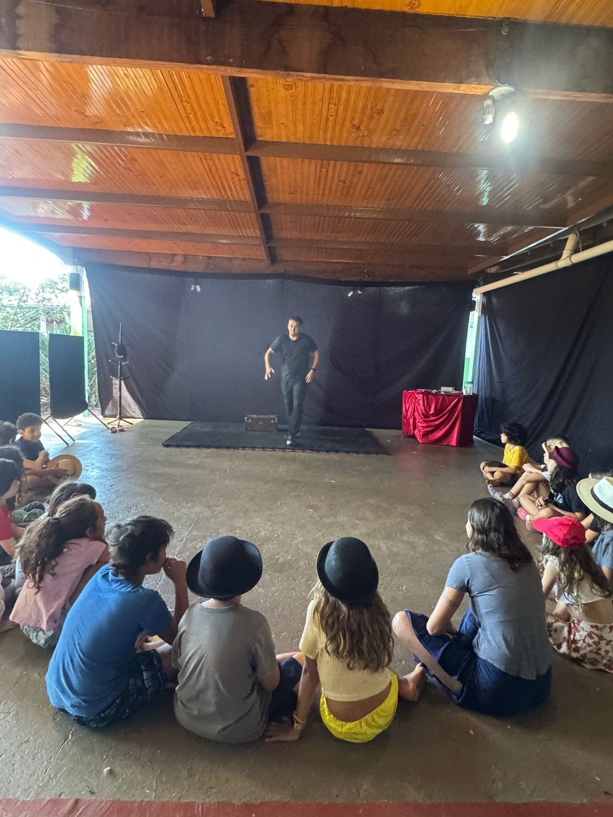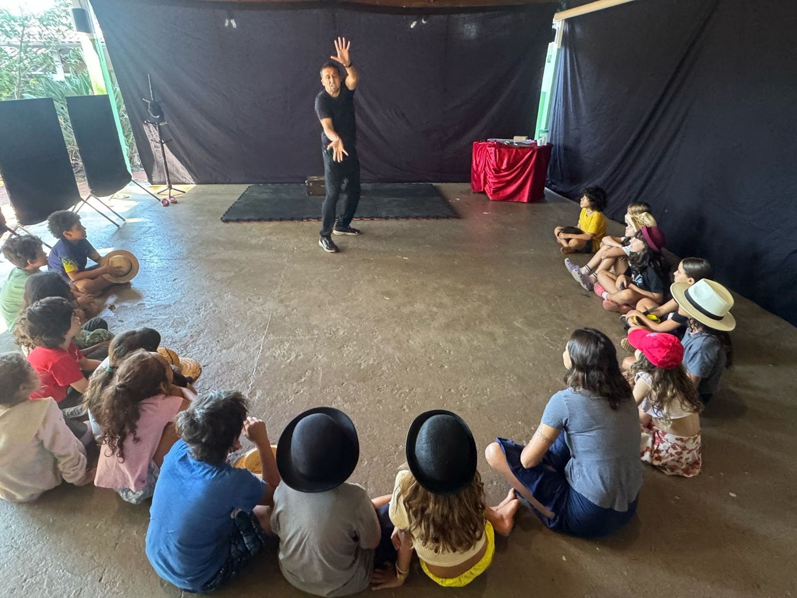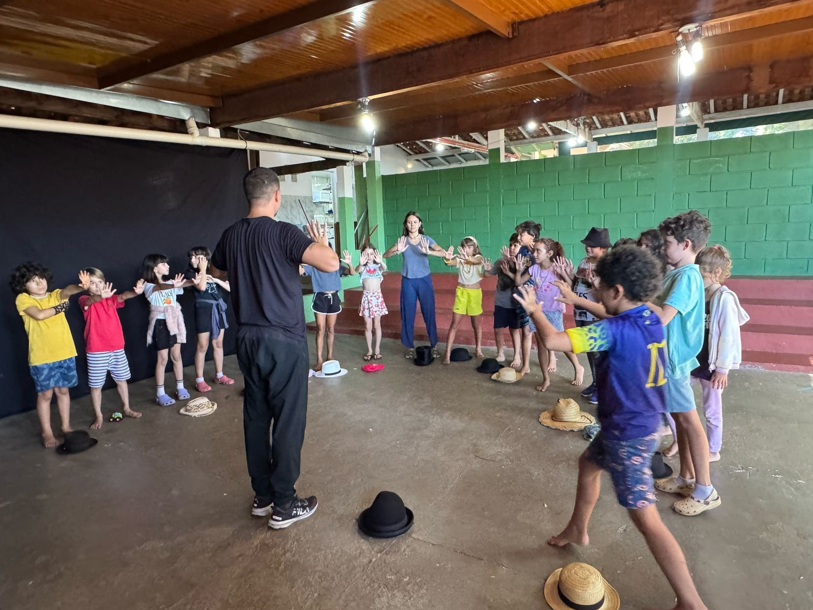 Depois de imergir no universo da fotografia a partir da cartola, objeto disparador do 4º ano, o projeto das crianças tomou rumo em direção à história do cinema, focando na Era do Cinema Mudo. A turma foi convidada a descobrir curiosidades e informações sobre Charlie Chaplin e, em diálogo com o assunto, ampliamos nossos conhecimentos a respeito dos tipos de linguagem, nos atentando às características da linguagem não verbal. Considerando a importância de experienciar no corpo os conceitos trabalhados em sala de aula e oportunizando a ampliação do repertório sobre a temática, recebemos em nossa escola o artista Mimicalado, que divertiu a turma com exercícios de mímica e manipulação de chapéus. 🎩