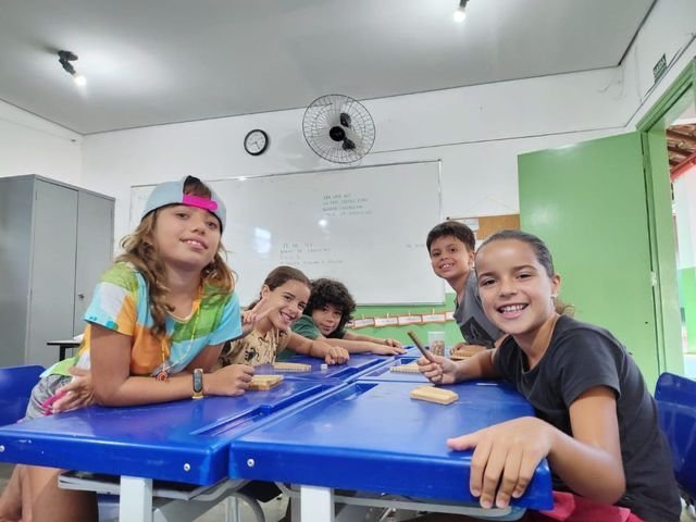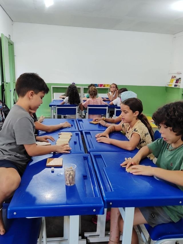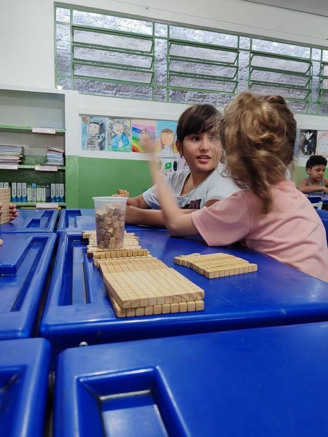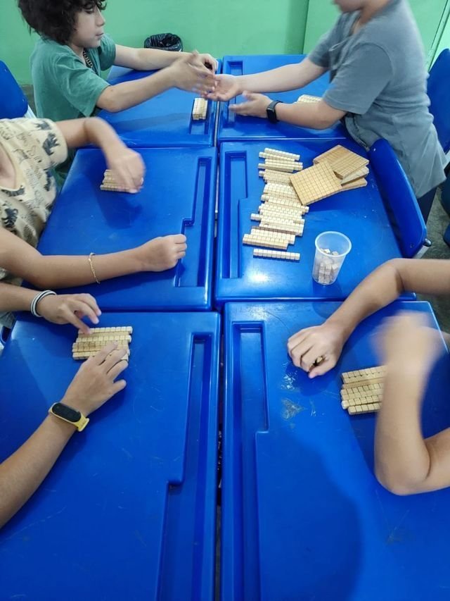 Hoje, na aula de matemática, as crianças do 4º ano exploraram o material dourado de forma lúdica e interativa! Através de jogos e desafios, aprimoraram seus conhecimentos sobre soma, subtração e o sistema de numeração decimal.