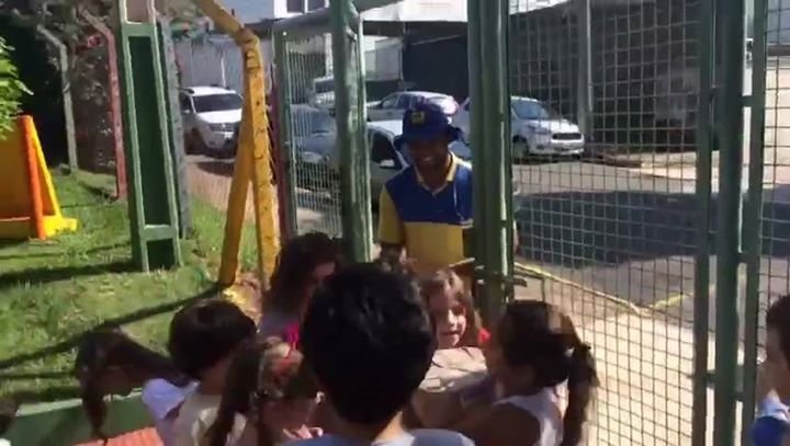 Eis que, nesta sexta feira ao iniciarmos a roda, recebemos um bilhete informando que o presente chegaria no dia de hoje e que deveríamos ficar esperando no portão da escola.