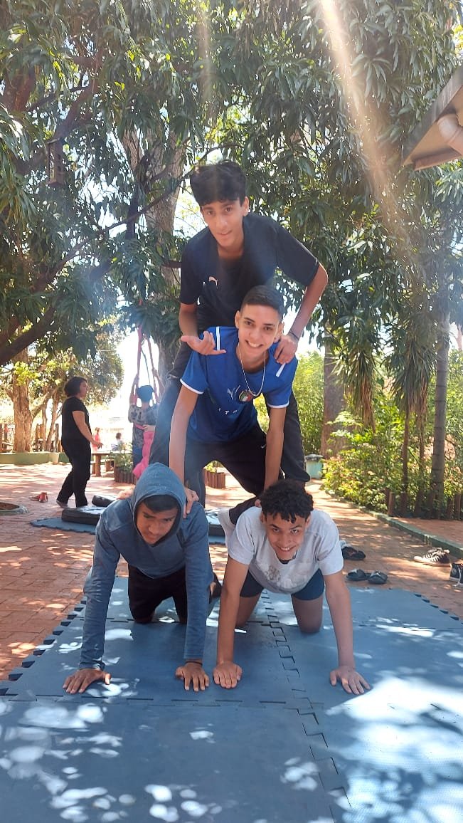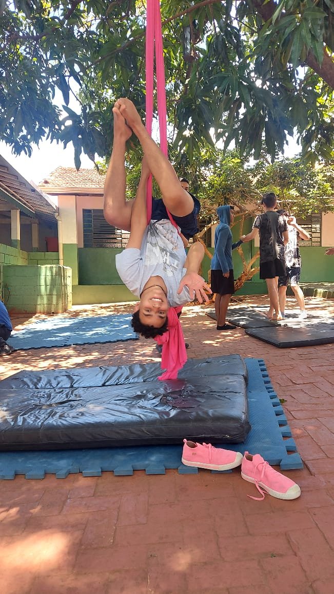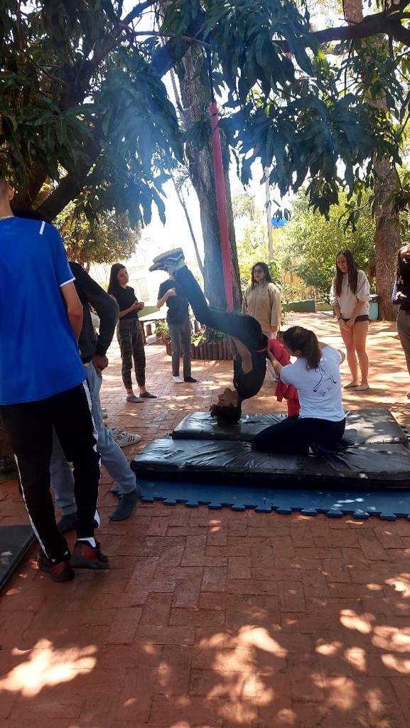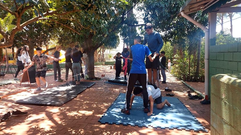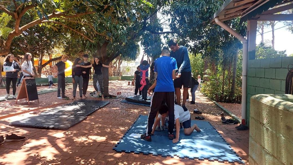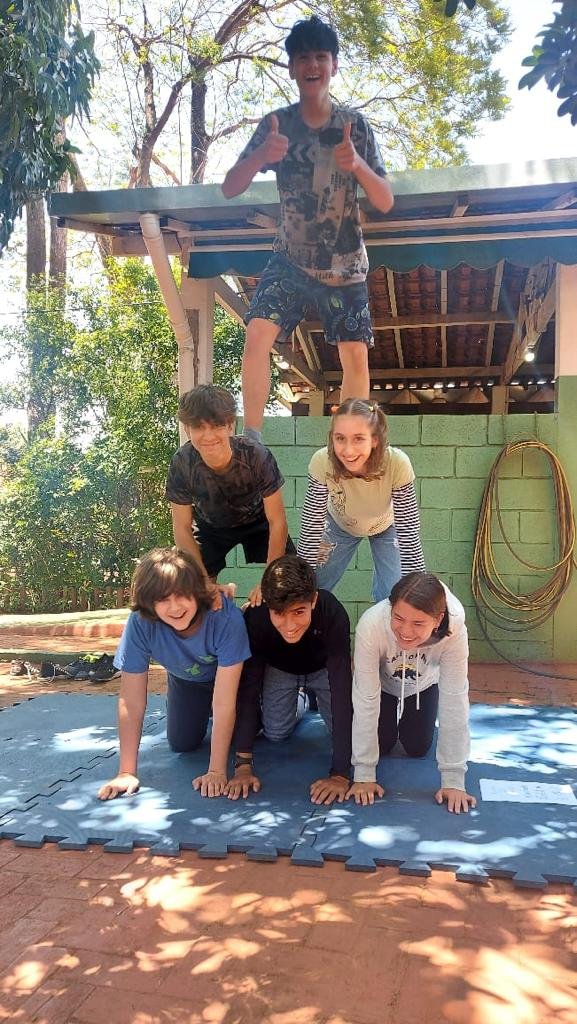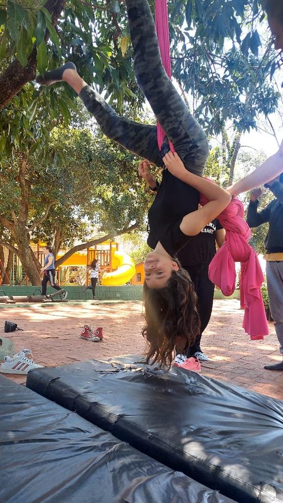 O tema definido para o 9º ano foi Autocuidado e, pensando nele, recebemos a visita da Professora Marina Boscariol @mabolcariol, que conduziu uma conversa com a turma sobre hábitos de autocuidado e como as práticas corporais moldam nossa personalidade e marcam alguns estereótipos. Também conversaram sobre a importância de estar aberto para experimentar novas possibilidades com o corpo e, a partir daí, aceitaram o convite de participarem de uma breve vivência no tecido acrobático, no Slakline e nas acrobacias de solo.