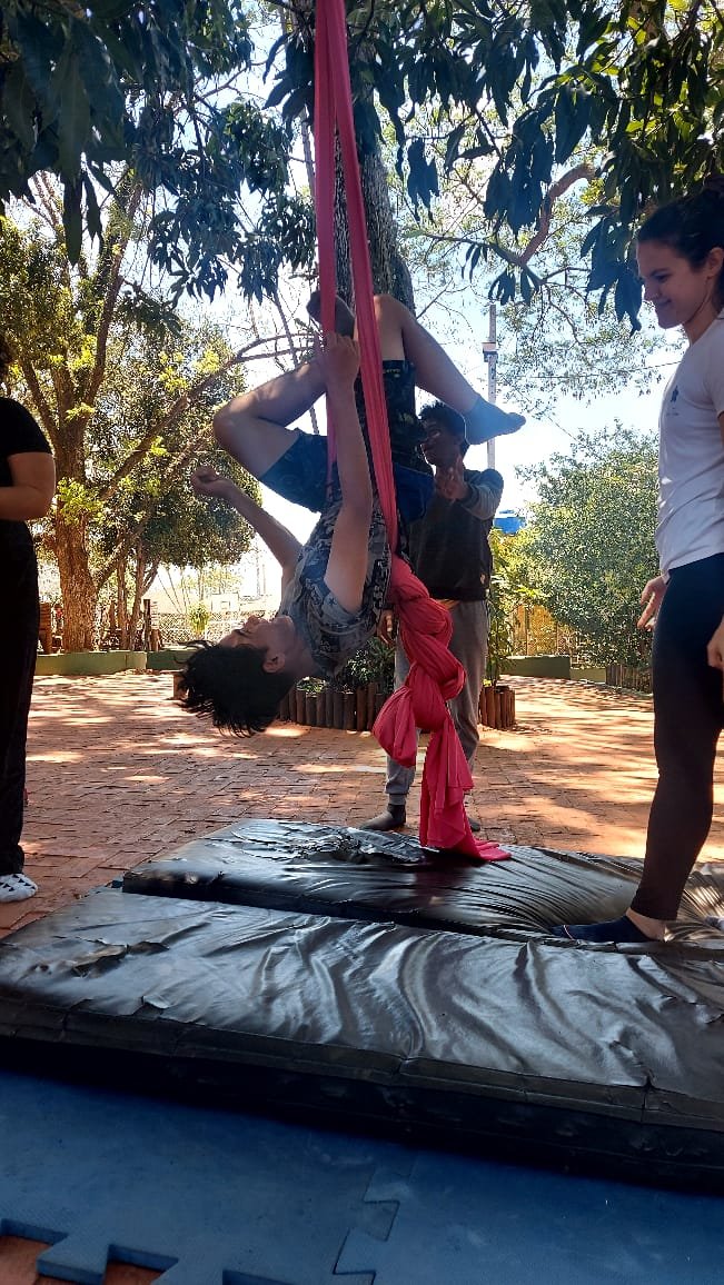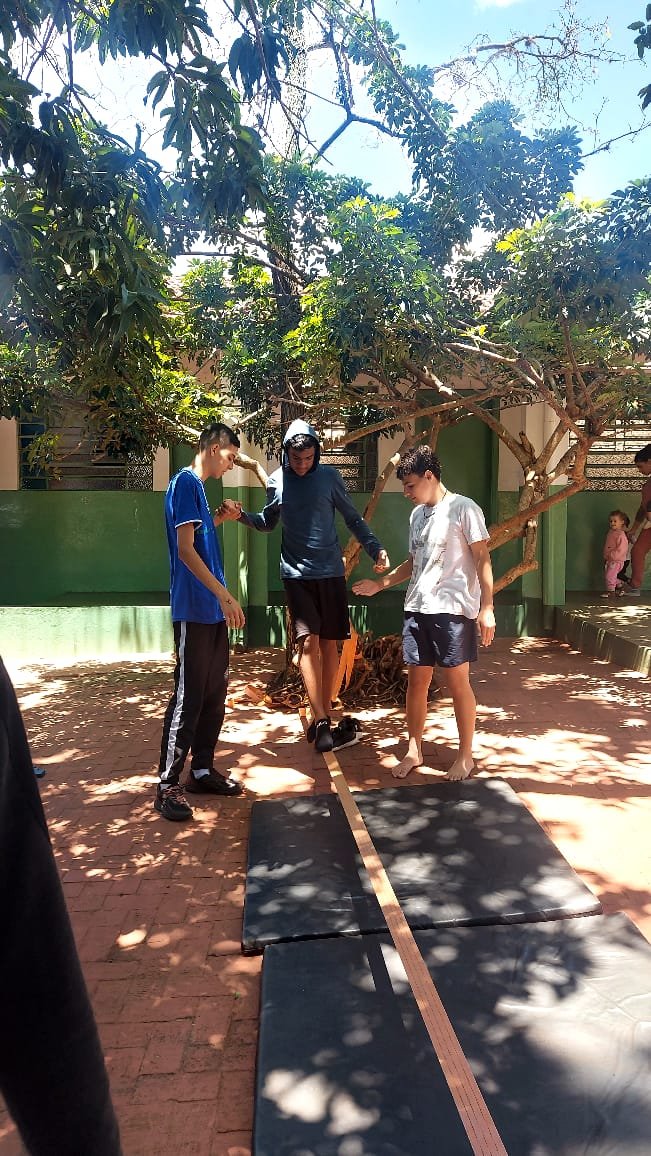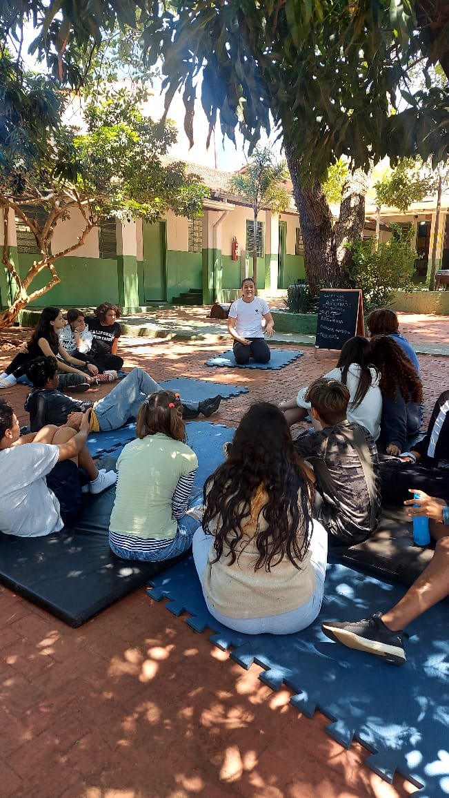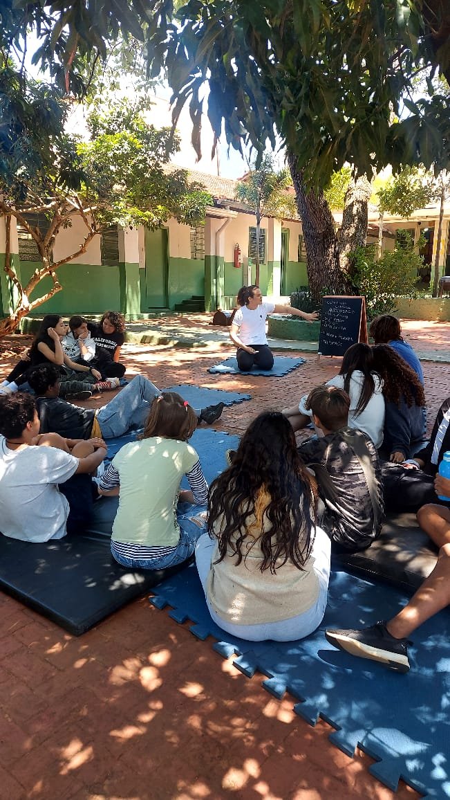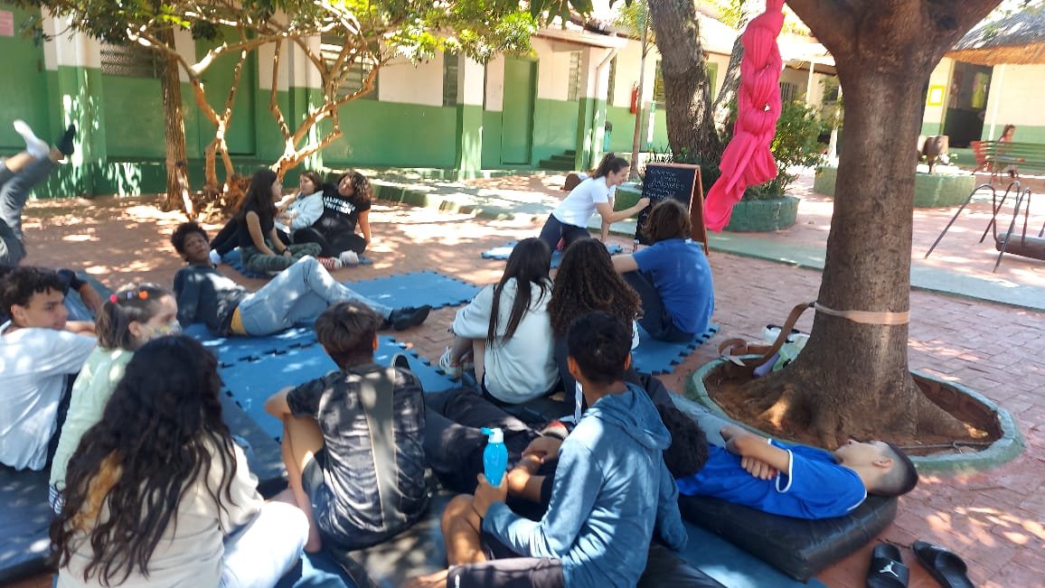 O tema definido para o 9º ano foi Autocuidado e, pensando nele, recebemos a visita da Professora Marina Boscariol @mabolcariol, que conduziu uma conversa com a turma sobre hábitos de autocuidado e como as práticas corporais moldam nossa personalidade e marcam alguns estereótipos. Também conversaram sobre a importância de estar aberto para experimentar novas possibilidades com o corpo e, a partir daí, aceitaram o convite de participarem de uma breve vivência no tecido acrobático, no Slakline e nas acrobacias de solo.