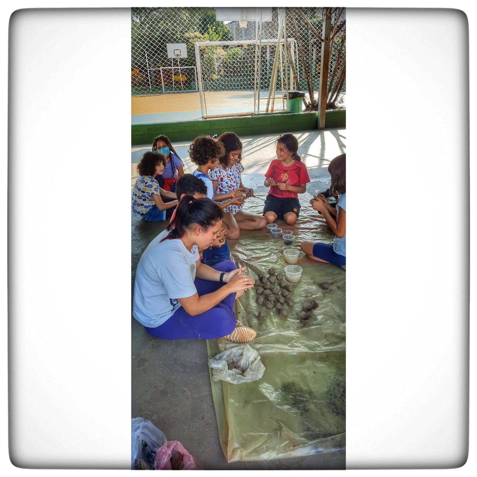 Essas bombas de semente foram feitas com muito carinho pelas crianças na oficina do Pé de Planta.