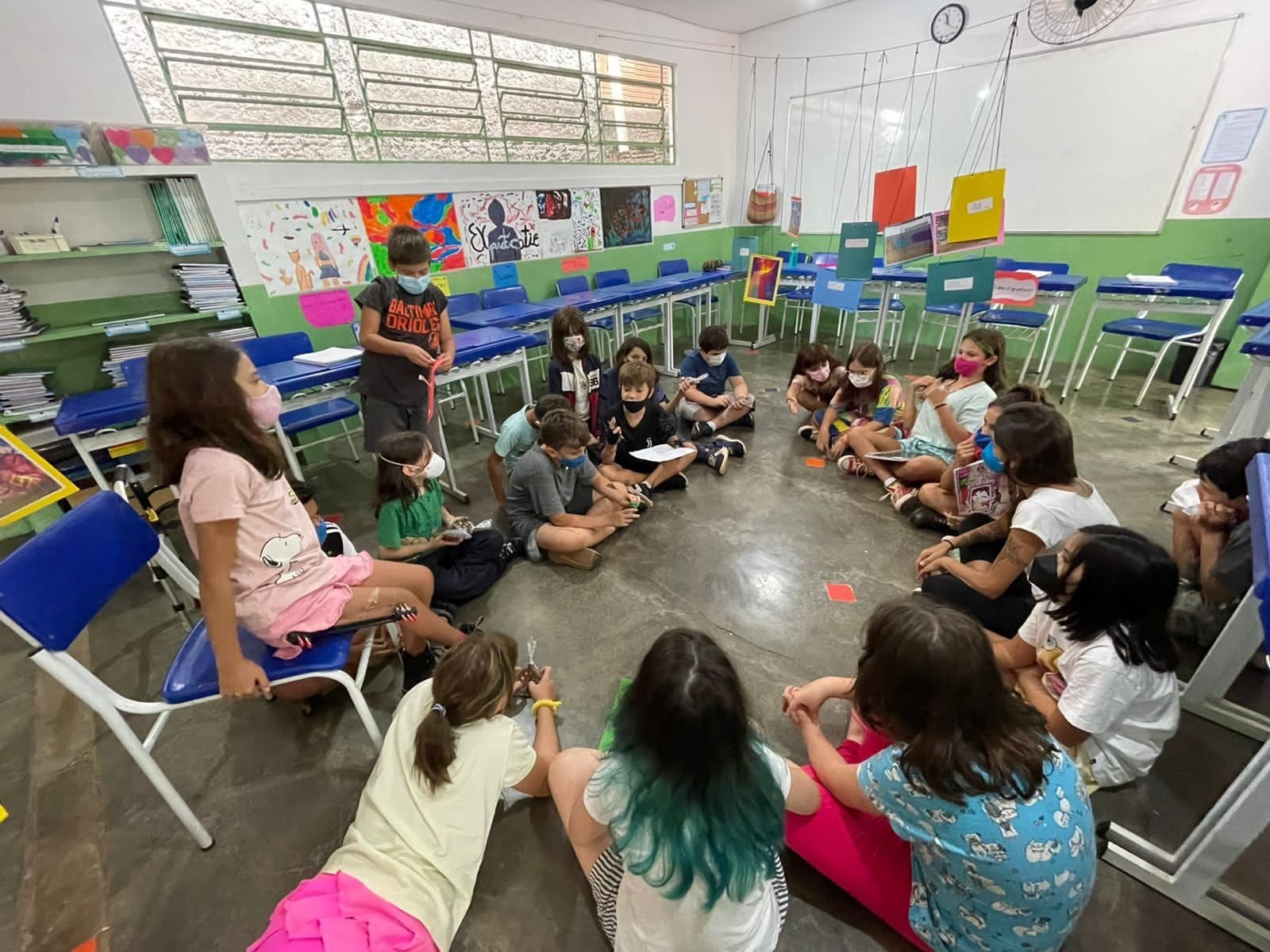 Para descobrir, o 4° ano precisou se atentar aos sinais, buscando compreender, através deles, as contradições e as especificidades presentes nos espaços urbanos. Observando atentamente as paisagens que compõem nosso entorno, as crianças se encantaram com os imensos e coloridos grafites que preenchem os muros de nossa cidade, sendo instigadas a pesquisar mais sobre o tema. Qual a origem dos grafites? Quais os materiais utilizados? Que mensagem eles podem nos transmitir? Quem são os autores e autoras dessa arte? A busca por respostas aproximou a turma do universo dos grafites e, assim, “Os grafiteiros” da Escola do Sítio ganharam voz, sendo convidados a se expressar através da arte e a customizar o muro da escola junto à seus familiares no Dia da Família, data tão especial para a nossa comunidade. O 4° ano também realizou exposições para as outras turmas, compartilhando suas descobertas e apresentando os trabalhos realizados ao longo deste projeto.