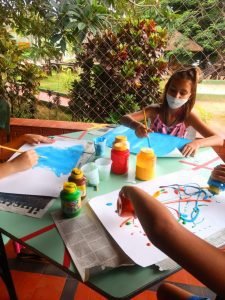 Os dedinhos pintores, fazedores de arte, mesmo em tempo difíceis, não pararam de se expressar.