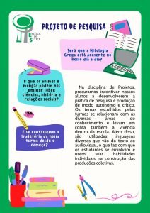 A disciplina Projeto de Pesquisa agregada ao nosso currículo estimula os alunos do fundamental II (6o ao 9o ano) a mobilizarem conhecimentos adquiridos nas diversas disciplinas.