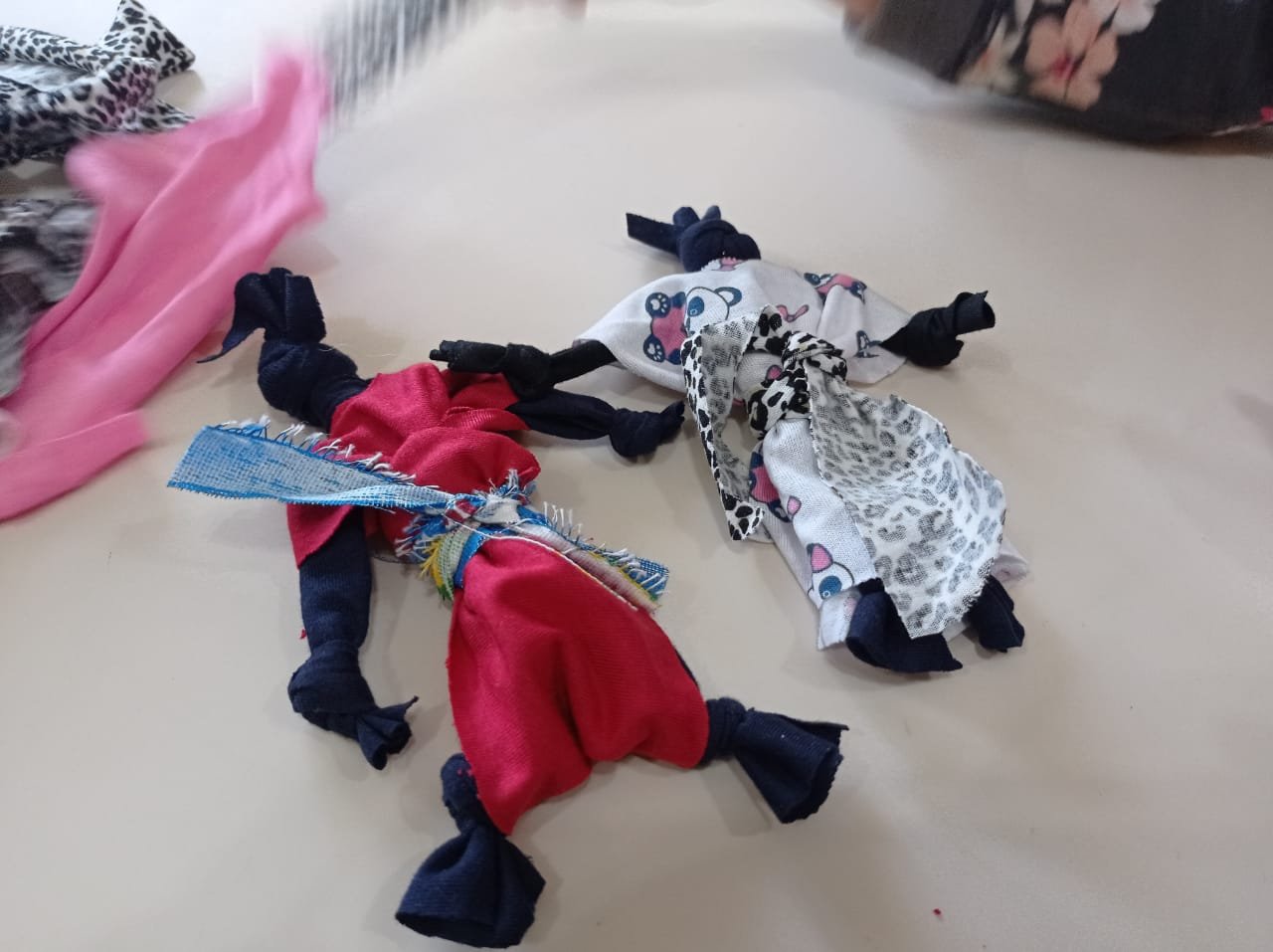 A boneca abayomi sempre negra é feita apenas com nós, sem usar agulha e linha.