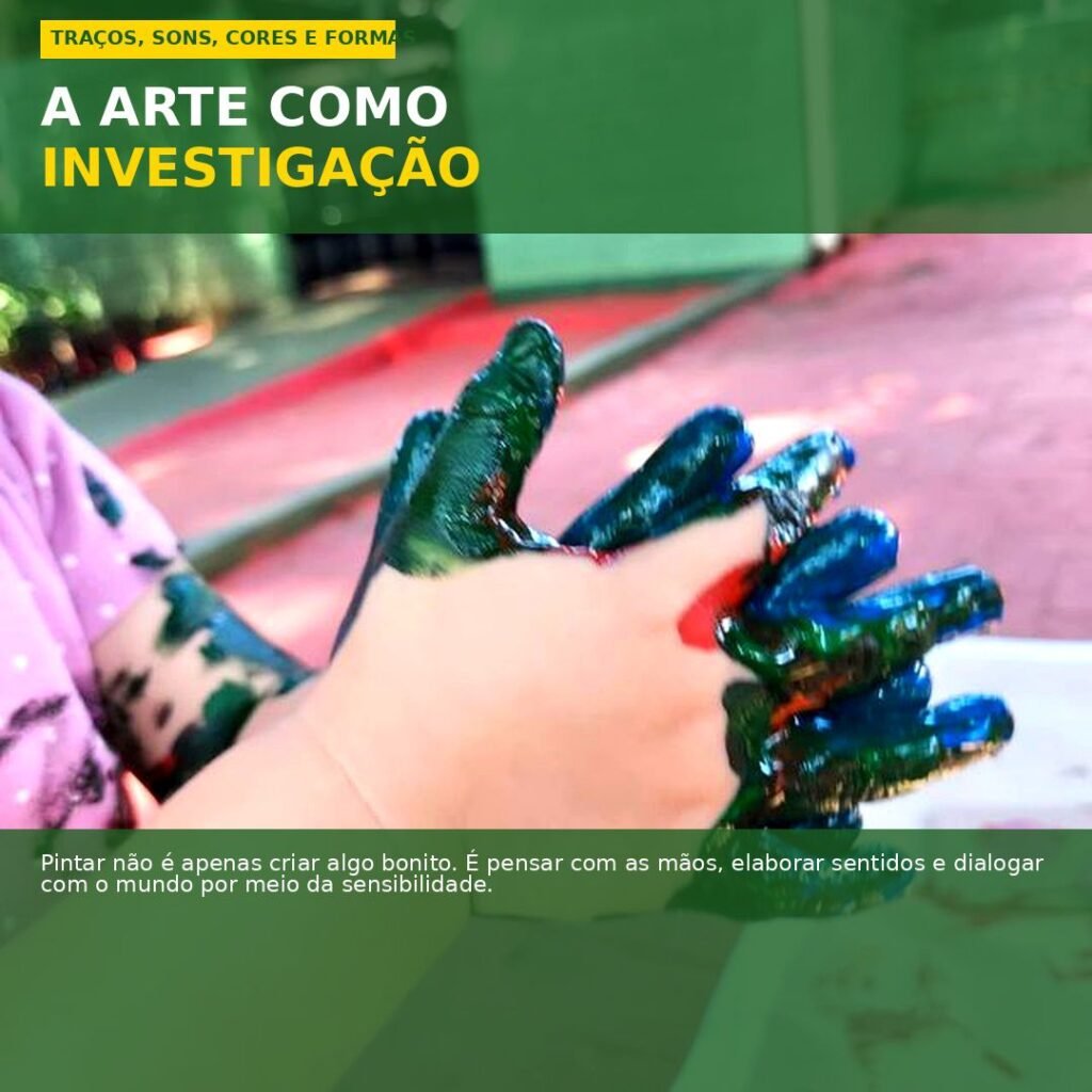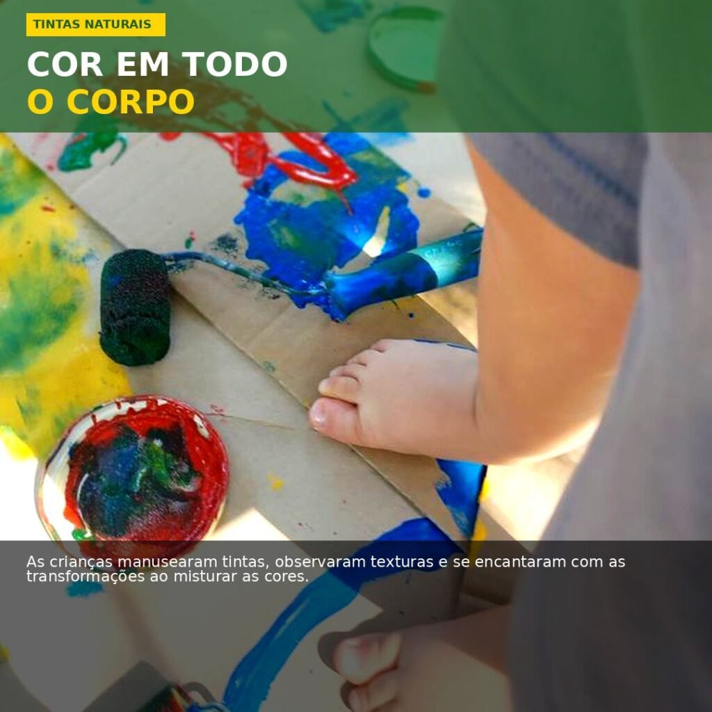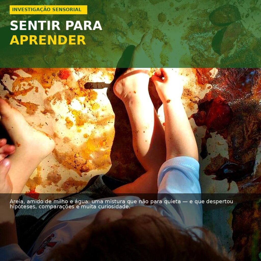 Exploração e Descoberta As crianças exploraram tintas naturais, descobrindo diferentes consistências e observando as transformações mágicas que acontecem quando as cores se encontram. Em seguida, mergulharam em uma investigação sensorial com areia, amido de milho e água. Essa mistura, que “não para quieta” nas mãos, foi o cenário perfeito para o surgimento de perguntas, hipóteses e muita conversa entre os pequenos pesquisadores.