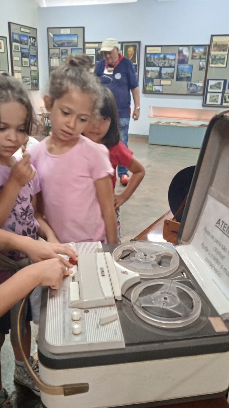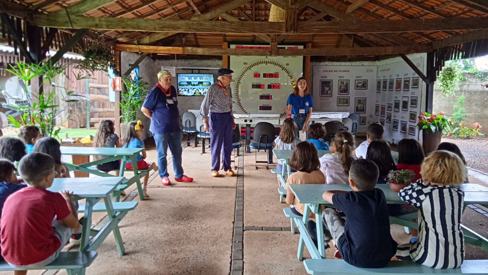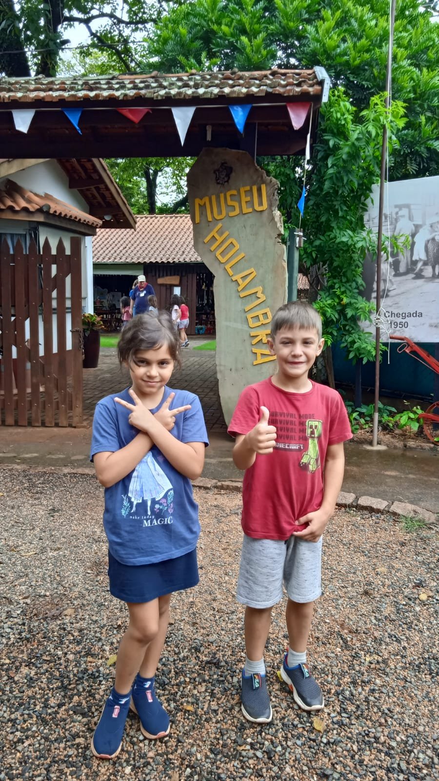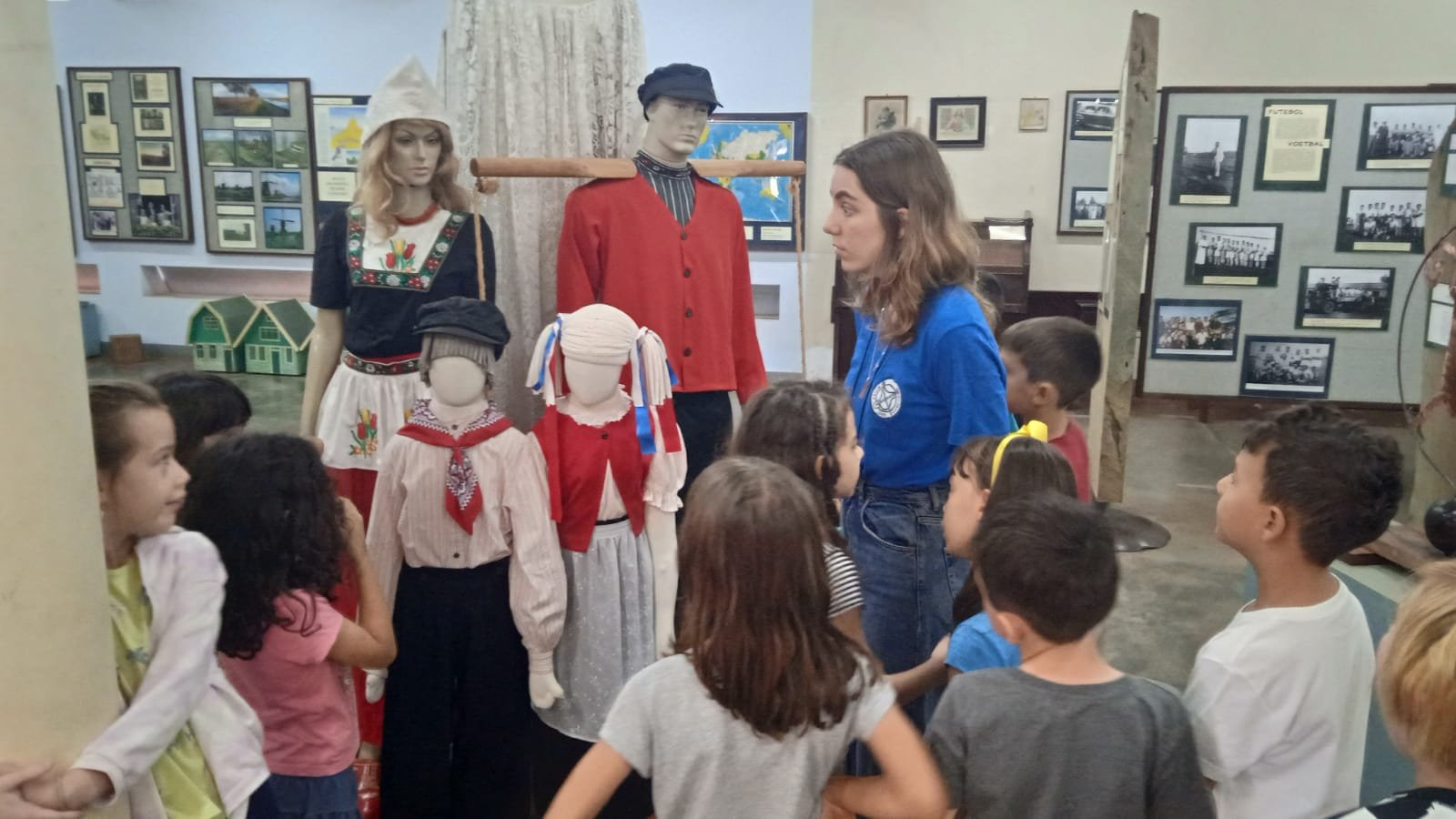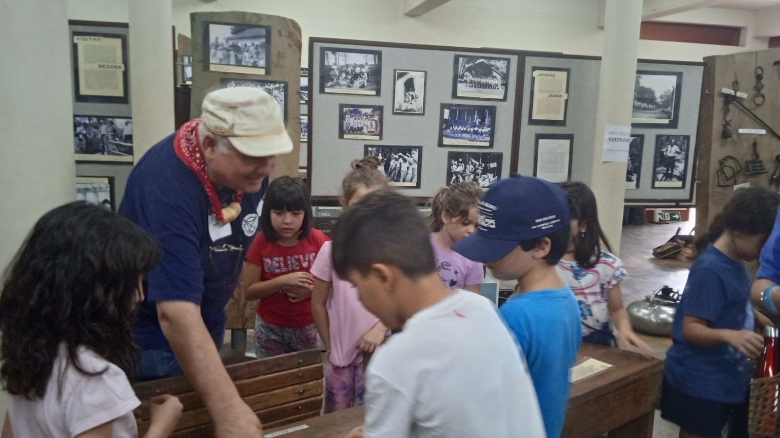 Durante o projeto do 1º ano “De quem é esse cantil?”, as crianças levantaram diversas hipóteses sobre a história desse objeto, imaginando versões e pesquisando pistas para essa descoberta. Como fechamento, discutimos o que são fontes históricas e escolhemos ir ao Museu de Holambra, sendo este um espaço de registro de memórias. Nesse estudo, as crianças conheceram a história da imigração e da formação da colônia holandesa no Brasil por meio de fotos e objetos originais usados pelos primeiros imigrantes. Lá também observaram réplicas das casas de pau a pique e de alvenaria, devidamente mobiliadas, conforme eram habitadas pelos imigrantes pioneiros, além de uma exposição de maquinários e tratores antigos.