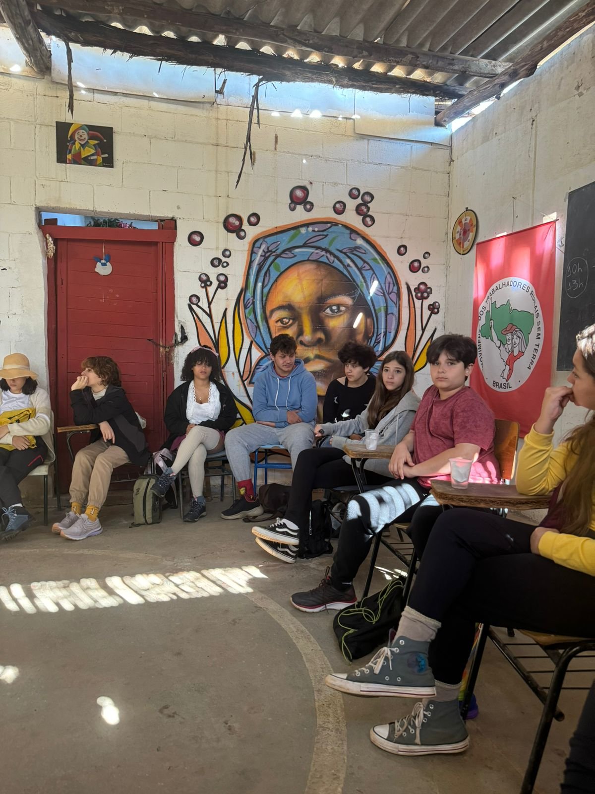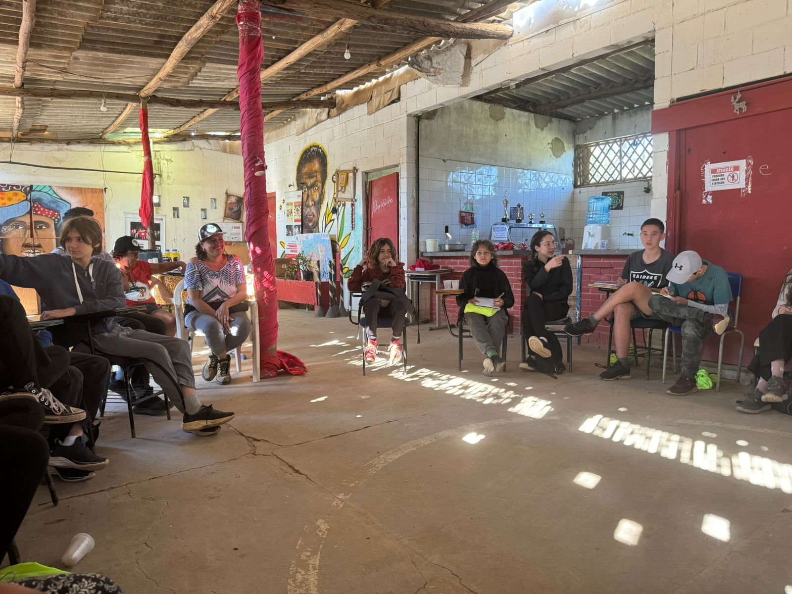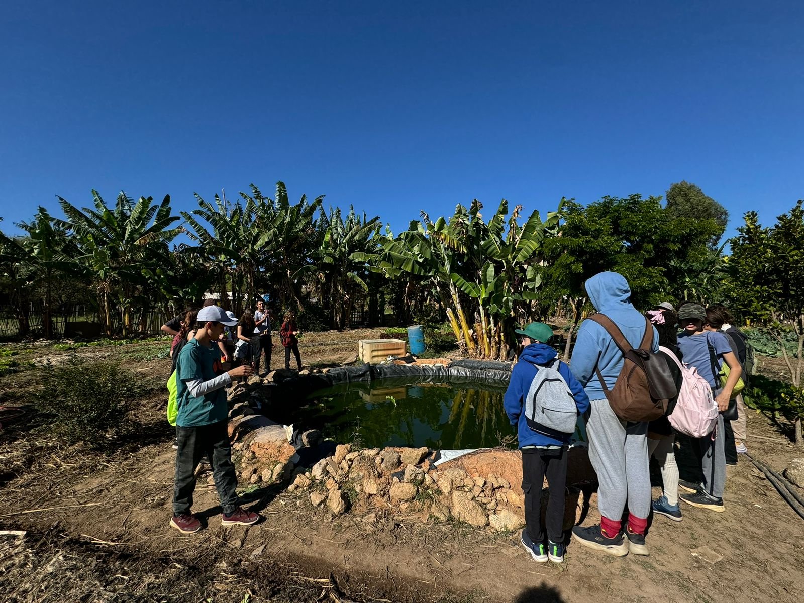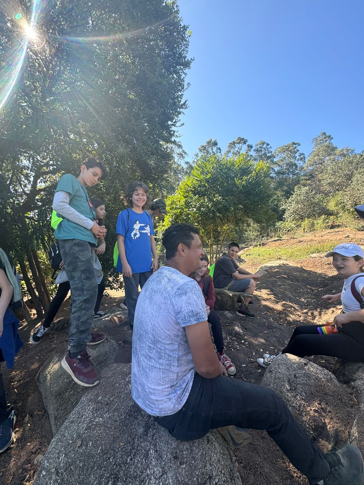 “Era o que eu queria, era o que eu sonhava” – foi dessa forma que Gil, morador do Acampamento Marielle Vive, orgulhoso da horta de plantas medicinais de que cuida e do defumador de carnes que criou, definiu o que o acampamento significou na vida dele. A visita da turma do 8º ano ao Acampamento foi pensada dentro dos conteúdos da disciplina de Geografia e do tema disparador da turma – “Antes de… tudo tem um ponto de partida”. Assim, a pergunta que nos colocamos foi: como era o cultivo de alimentos antes da produção em massa voltada para a exportação? É possível, hoje, um modelo diferente desse? A ideia era conhecer um espaço que pressupõe o uso social da terra, colocando em prática na “horta mandala” conhecimentos ancestrais e técnicas atuais, com o intuito de manter uma produção sustentável e orgânica. A visita extrapolou em muito a intenção inicial. Junto das práticas produtivas, conhecemos a história do Acampamento e sua organização detalhada, com os nove setores, compostos por núcleos familiares, cada um com funções e tarefas bem estabelecidas, para compor as demandas coletivas. Vimos como as assembleias, tema tão trabalhado na escola, acontecem no “mundo real” e podem pautar decisões de uma comunidade de centenas de pessoas. Ouvimos histórias, muitas histórias, e fomos convidados a olhar para o elemento humano que sustenta o que usualmente se noticia por uma sigla – MST. E, assim, conhecemos Ezequiel, recém formado técnico em agroecologia e agrofloresta, que passa boa parte dos dias em reuniões e decisões e se refugia na natureza quando precisa de silêncio. Soubemos que Cintia, do núcleo de comunicação, foi ex-aluna da Escola do Sítio e hoje vive no Acampamento, compartilhando seus conhecimentos em arquitetura. Fomos recebidos por Luciana, que vive no Marielle desde que a filha tinha 2 anos, quando a distribuição de água lá era uma questão ainda mais desafiadora do hoje (em que um caminhão pipa abastece diariamente a comunidade, concedendo restritos 100 litros diários de água por família, que carrega esse bem essencial em tonéis até cada habitação). Fomos acolhidos por Lia, que abriu sua casa para nos emprestar o banheiro, e contou como o Coletivo Marielles, que fomenta a independência das mulheres, a tornou consciente das opressões de gênero da nossa sociedade e abriu a ela novas possibilidades. E terminamos nossa visita com um almoço preparado pelas pessoas responsáveis pelo setor da cozinha, que serve de 80 a 100 refeições por dia, aos moradores que precisam. Saímos de lá com um grupo de adolescentes falantes, risonhos, tomados por vida. Que tiveram contato com uma realidade muito distinta da que conhecem em suas rotinas, mas que também puderam perceber a sabedoria existente no que parece simples ou a força vinda dos desafios partilhados em comunidade. Adolescentes que, talvez, tenham saído inspirados a buscar construir em suas próprias trajetórias a fala de Gil – “era o que eu queria, era o que eu sonhava”. Professoras: Ludmila (Geografia) e Silvia (História) Coordenadora pedagógica: Daniele Megid