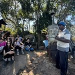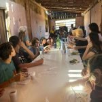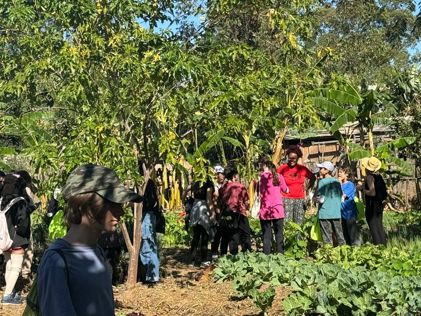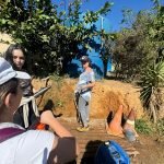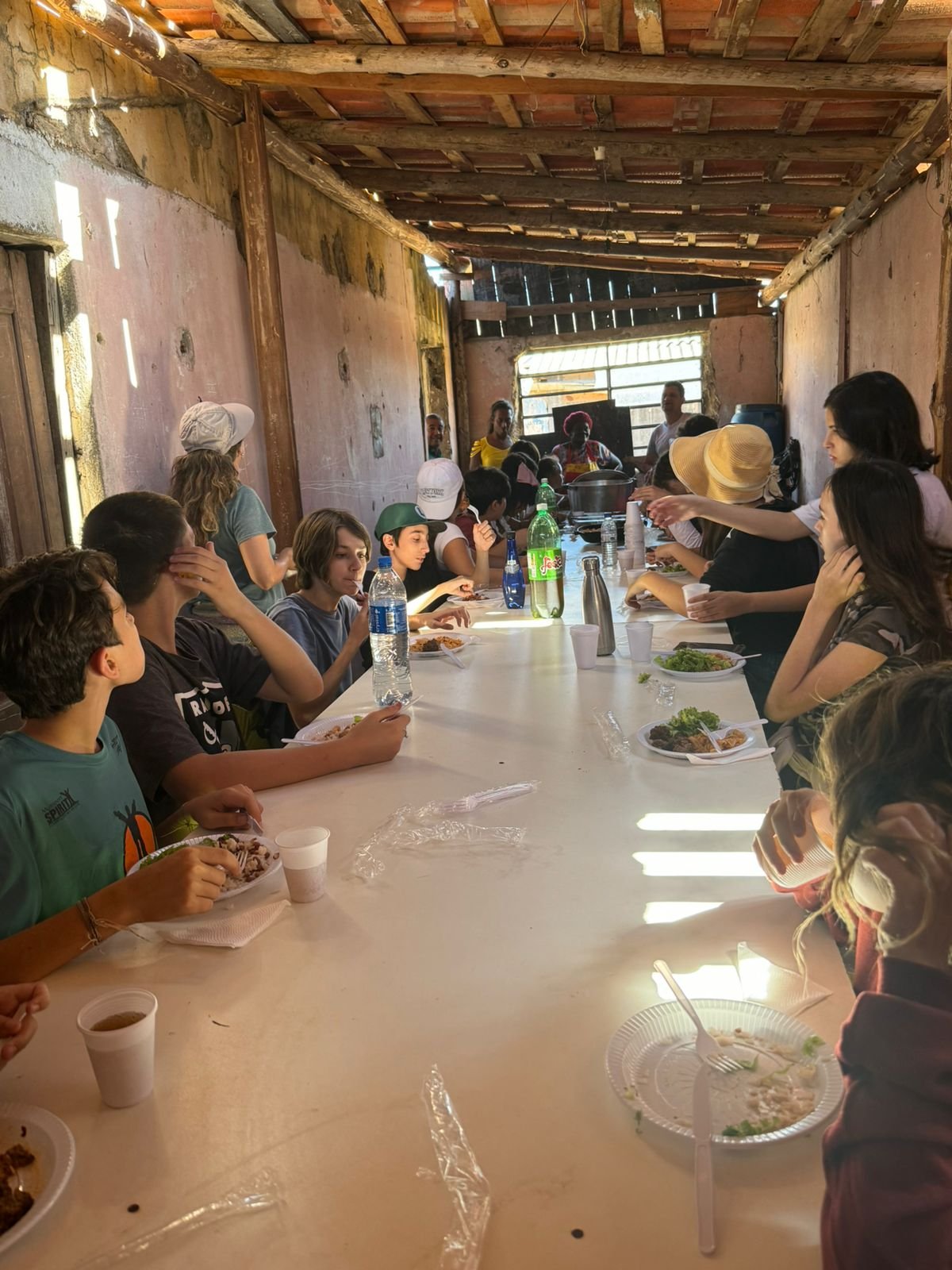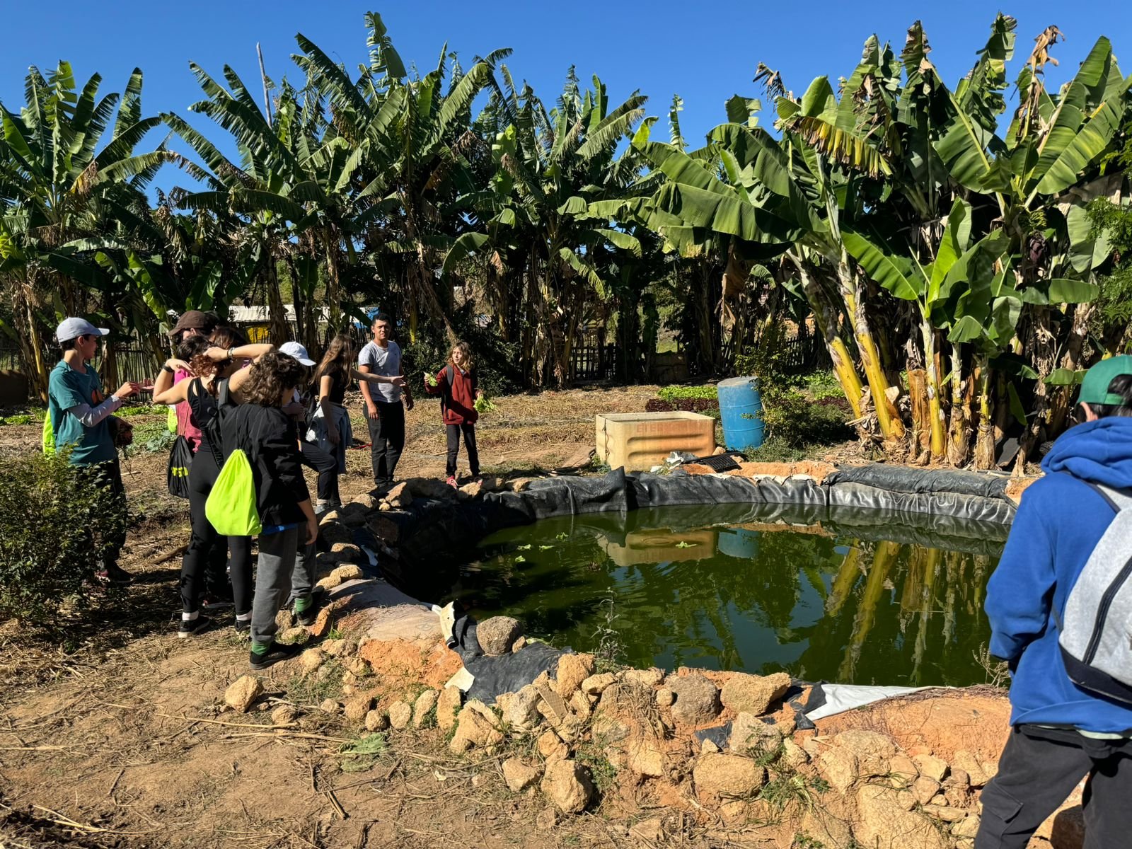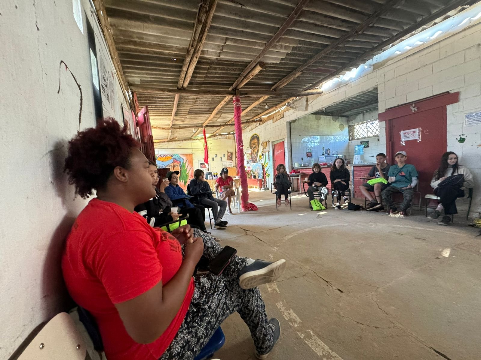“Era o que eu queria, era o que eu sonhava” – foi dessa forma que Gil, morador do Acampamento Marielle Vive, orgulhoso da horta de plantas medicinais de que cuida e do defumador de carnes que criou, definiu o que o acampamento significou na vida dele. A visita da turma do 8º ano ao Acampamento foi pensada dentro dos conteúdos da disciplina de Geografia e do tema disparador da turma – “Antes de… tudo tem um ponto de partida”. Assim, a pergunta que nos colocamos foi: como era o cultivo de alimentos antes da produção em massa voltada para a exportação? É possível, hoje, um modelo diferente desse? A ideia era conhecer um espaço que pressupõe o uso social da terra, colocando em prática na “horta mandala” conhecimentos ancestrais e técnicas atuais, com o intuito de manter uma produção sustentável e orgânica. A visita extrapolou em muito a intenção inicial. Junto das práticas produtivas, conhecemos a história do Acampamento e sua organização detalhada, com os nove setores, compostos por núcleos familiares, cada um com funções e tarefas bem estabelecidas, para compor as demandas coletivas. Vimos como as assembleias, tema tão trabalhado na escola, acontecem no “mundo real” e podem pautar decisões de uma comunidade de centenas de pessoas. Ouvimos histórias, muitas histórias, e fomos convidados a olhar para o elemento humano que sustenta o que usualmente se noticia por uma sigla – MST. E, assim, conhecemos Ezequiel, recém formado técnico em agroecologia e agrofloresta, que passa boa parte dos dias em reuniões e decisões e se refugia na natureza quando precisa de silêncio. Soubemos que Cintia, do núcleo de comunicação, foi ex-aluna da Escola do Sítio e hoje vive no Acampamento, compartilhando seus conhecimentos em arquitetura. Fomos recebidos por Luciana, que vive no Marielle desde que a filha tinha 2 anos, quando a distribuição de água lá era uma questão ainda mais desafiadora do hoje (em que um caminhão pipa abastece diariamente a comunidade, concedendo restritos 100 litros diários de água por família, que carrega esse bem essencial em tonéis até cada habitação). Fomos acolhidos por Lia, que abriu sua casa para nos emprestar o banheiro, e contou como o Coletivo Marielles, que fomenta a independência das mulheres, a tornou consciente das opressões de gênero da nossa sociedade e abriu a ela novas possibilidades. E terminamos nossa visita com um almoço preparado pelas pessoas responsáveis pelo setor da cozinha, que serve de 80 a 100 refeições por dia, aos moradores que precisam. Saímos de lá com um grupo de adolescentes falantes, risonhos, tomados por vida. Que tiveram contato com uma realidade muito distinta da que conhecem em suas rotinas, mas que também puderam perceber a sabedoria existente no que parece simples ou a força vinda dos desafios partilhados em comunidade. Adolescentes que, talvez, tenham saído inspirados a buscar construir em suas próprias trajetórias a fala de Gil – “era o que eu queria, era o que eu sonhava”. Professoras: Ludmila (Geografia) e Silvia (História) Coordenadora pedagógica: Daniele Megid