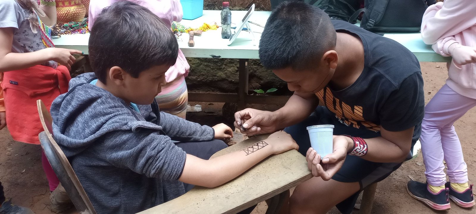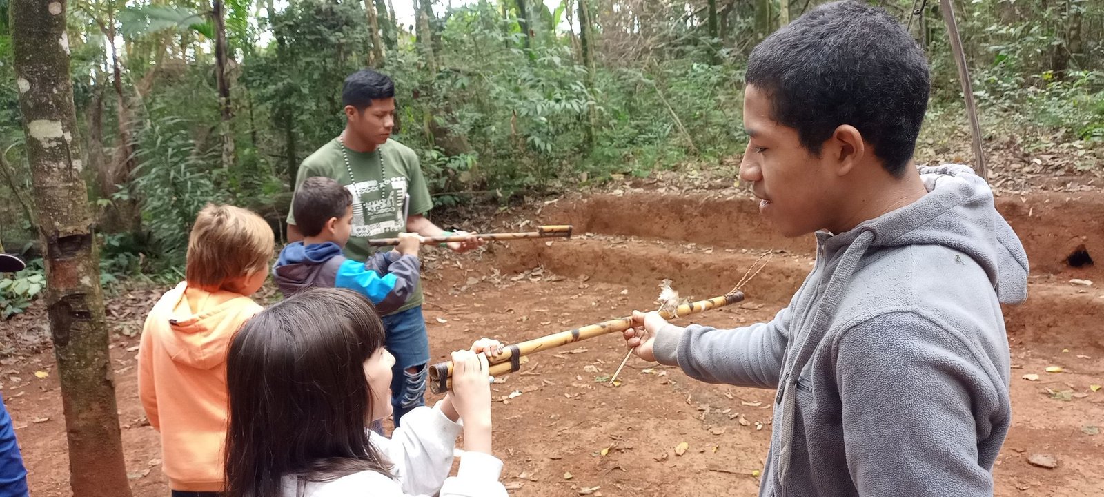 O objeto disparador do 2º ano, uma casa quilombola, possibilitou que a turma dialogasse sobre assuntos diversos, entre eles a diversidade cultural através das moradias. Nesse momento, o foco das investigações está pautado na cultura indígena e, para aprofundarmos nossas reflexões, faremos um Estudo do Meio à Aldeia “Tekoa Yvy Porã”, que traz como significado “aldeia da terra bonita/sagrada”, favorecendo assim novas descobertas e o contato direto com o povo Guarani. A aldeia está localizada no Território Indígena do Jaraguá, no estado de São Paulo. Em seu entorno, há a criação de 16 espécies de abelhas sem ferrão, uma vasta flora de plantas medicinais e, dentro da comunidade, a “casa de reza”. A comunidade estabelece uma relação pontual com a natureza e seu modo de alimentação, mostrando a importância da manutenção da cultura tradicional. Nesse estudo, conheceremos também a dança dos Xondaros (guerreiros), os artesanatos, faremos pinturas corporais e práticas com arco e flecha. Finalizaremos o dia com o delicioso lanche da tarde característico do grupo, com txipa (massa frita feita de trigo, água, sal e fermento), milho cozido, suco, café e chá de açúcar.