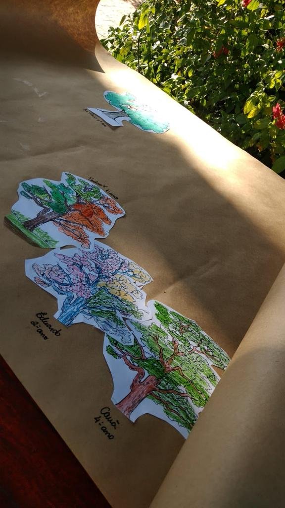 A cada semana, lemos um capítulo do livro, no espaço da escola , que em conjunto, os alunos escolhem para desfrutar do texto e dos diálogos que surgem a partir dele. Desenvolvemos atividades relacionadas ao que foi lido, de forma que possamos re-construir essa nossa floresta, buscando elementos do nosso meio (cascas de árvores, pedras, folhas e flores com cheiro) formando uma rede que permite conhecimento e transformações.