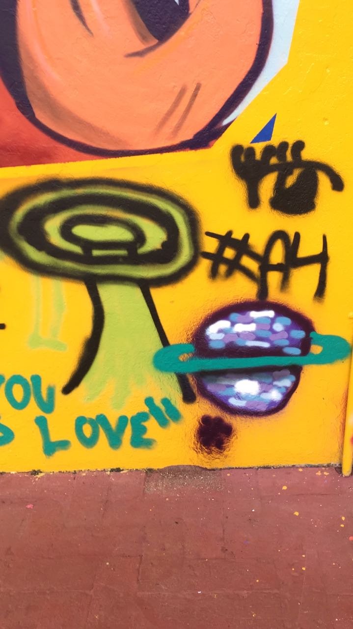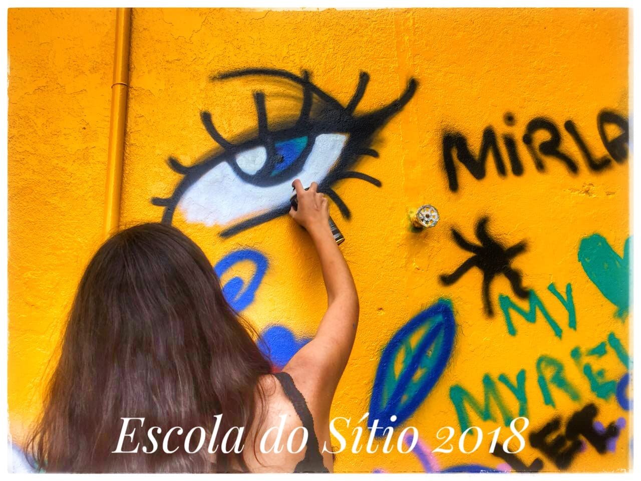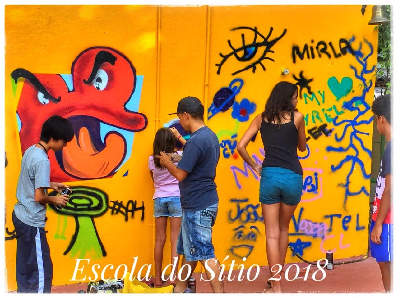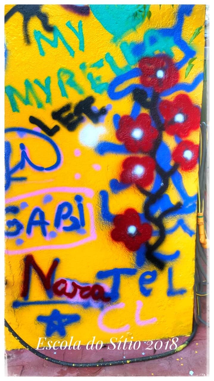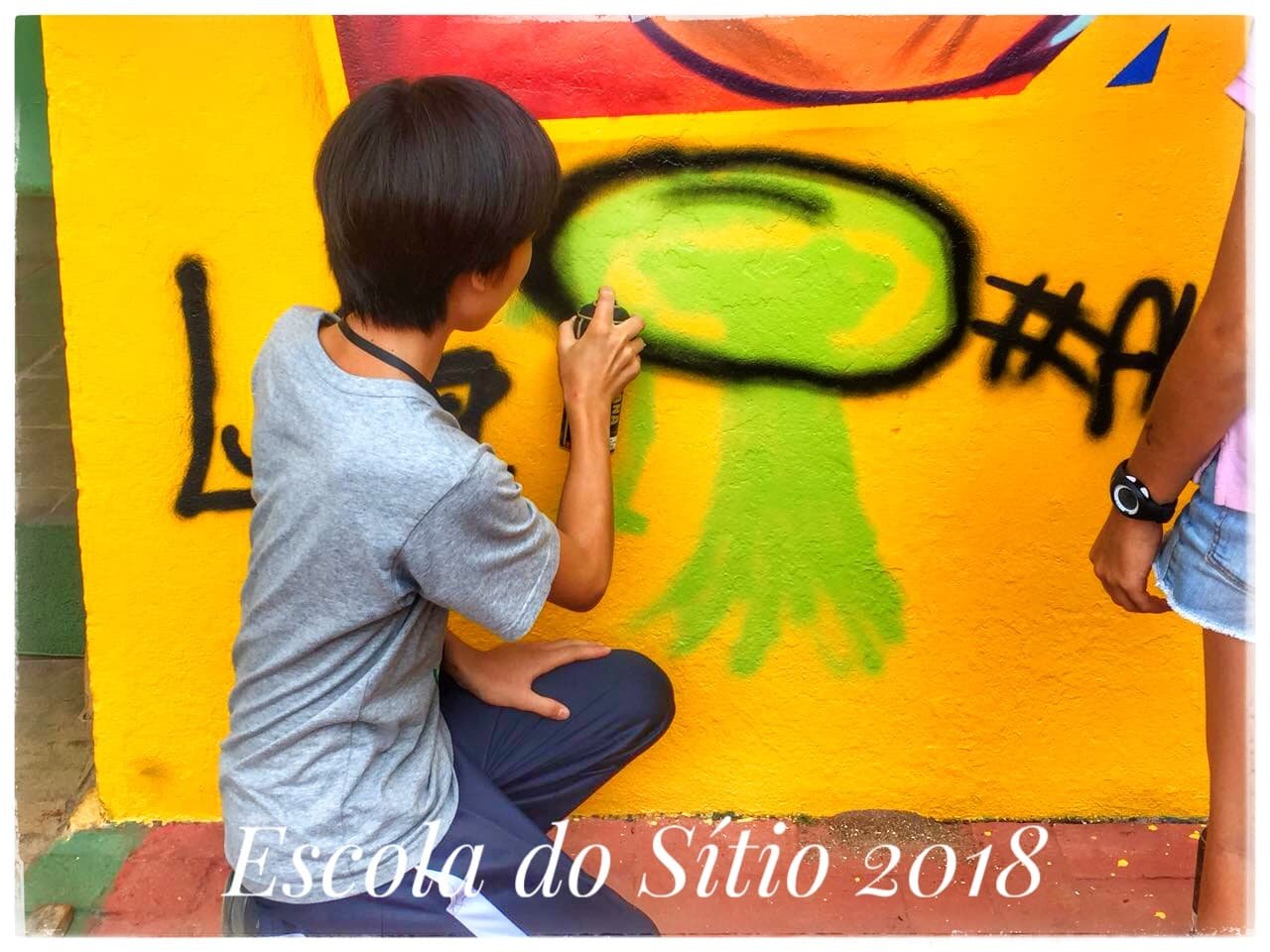 O grafite surgiu em nossas aulas de produção textual, quando  fomos decidir assuntos que gostaríamos de mostrar em nosso jornal. Na roda de conversa inicial, os jovens jornalistas sugeriram falar sobre as artes urbanas, incluindo-se ai o Rap e o grafite. Em 2017, eles haviam mapeado algumas produções nos muros de Barão Geraldo e se mostraram ainda curiosos sobre o tema. Então, pesquisas sobre as origens do Grafite foram realizadas. Finalmente os alunos sugeriram convidar um artista para que este pudesse falar sobre essa arte às vezes tão mal interpretada. Conseguimos contato com o Osmir, ele e o irmão são grafiteiros há 20 anos e têm um imenso respeito pela arte de rua em geral. Falou-nos um pouco sobre sua trajetória e as dificuldades encontradas, de modo descontraído, logo ocorreu uma super interação com os alunos que puderam tirar suas dúvidas, falar sobre o que conheciam acerca do grafite e finalmente experimentar um pouco dessa produção artística deixando sua marca numa parede da escola.