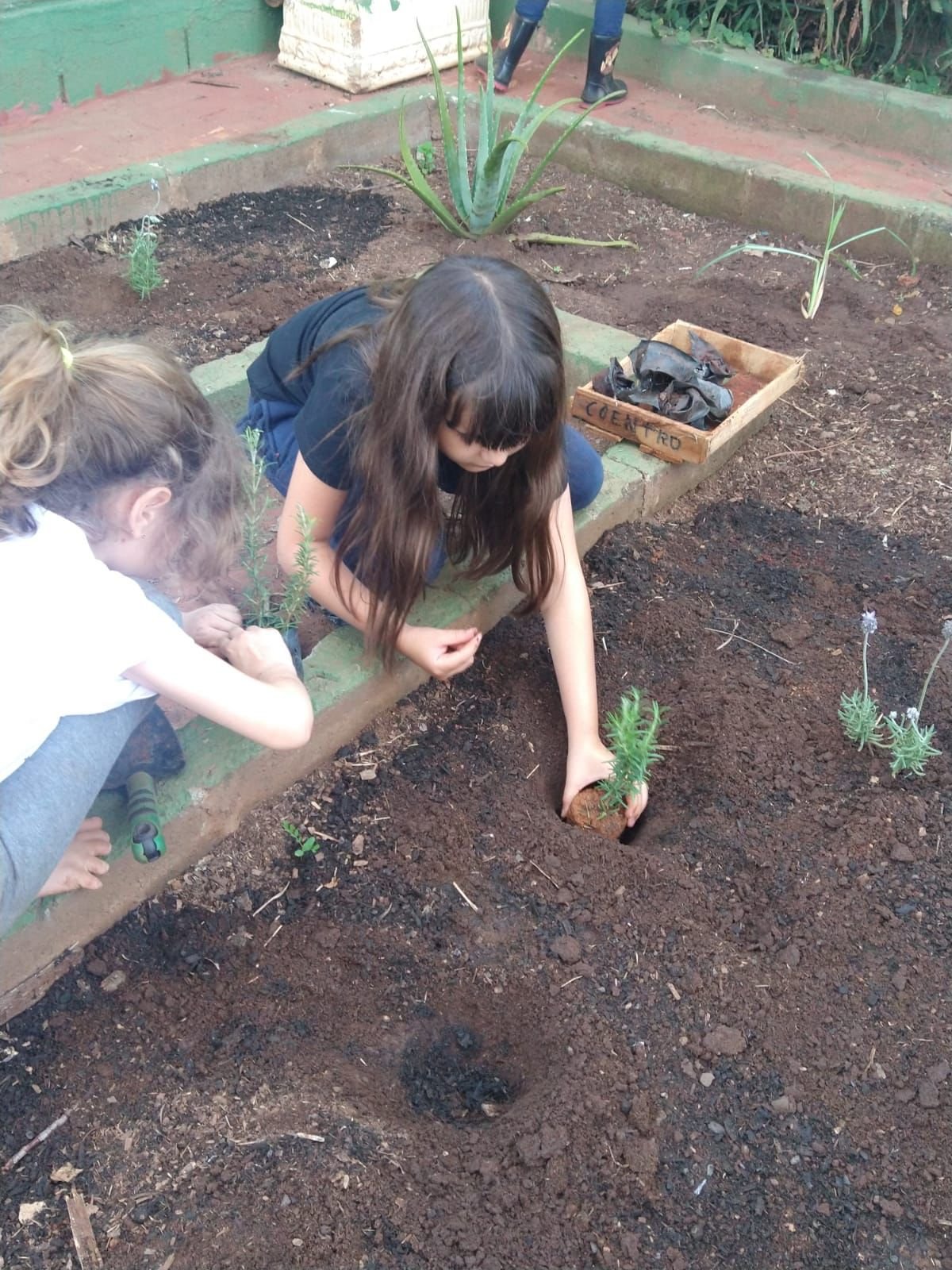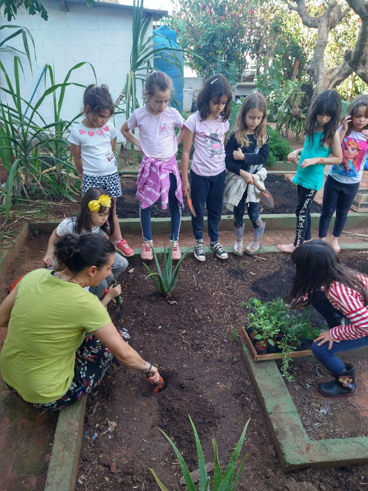 O novo jardim de plantas aromáticas e medicinais da Escola do Sítio é mais do que um espaço de aprendizado; é um local onde as crianças podem explorar, sonhar e crescer juntamente com a natureza. Sob a orientação da professora Marina que é da área de ciências, a jornada educativa através do mundo das plantas promete ser uma experiência rica e inesquecível, semeando o conhecimento que dará frutos para cada um dos “pequenos(as) jardineiros(as).