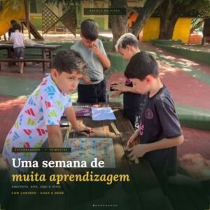 Na semana de encerramento do 1º trimestre, a turma do 4º ano viveu uma sequência de propostas que articulam diversão, criação e aprendizagem com intencionalidade pedagógica. Matemática e Língua Portuguesa em Jogo O tradicional jogo de Palavras Cruzadas ganhou uma nova dimensão ao integrar duas áreas fundamentais. De um lado,