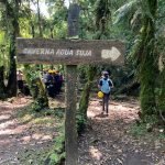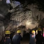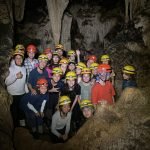 Começamos o dia indo até Santana: uma trilha curta, uma parada na bica de água fresca e chegamos na visão que talvez tenha sido a primeira vivência do tipo de nossas alunas e nossos alunos – a boca de uma caverna. Lá dentro, a caminhada com as luzes dos capacetes focando os espeleotemas de tirar o fôlego abria, por vezes, espaço para paradas para escutar explicações sobre a formação das cavernas ou para viver a experiência avassaladora do escuro e silêncio absolutos.