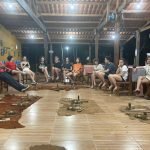 À noite, para fechar a programação, recebemos em nossa pousada o grupo Planeta Trilha com a oficina “Campo Primitivo”, que desafiou alunas e alunos a fazerem fogo com instrumentos diferentes – pederneira, pedra lascada e arco e broca.