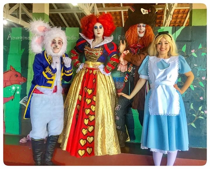 Alice, Rainha de Copas, Chapeleiro Maluco e o Coelho saíram do País das Maravilhas e se encantaram com o nosso espaço e alunos.
