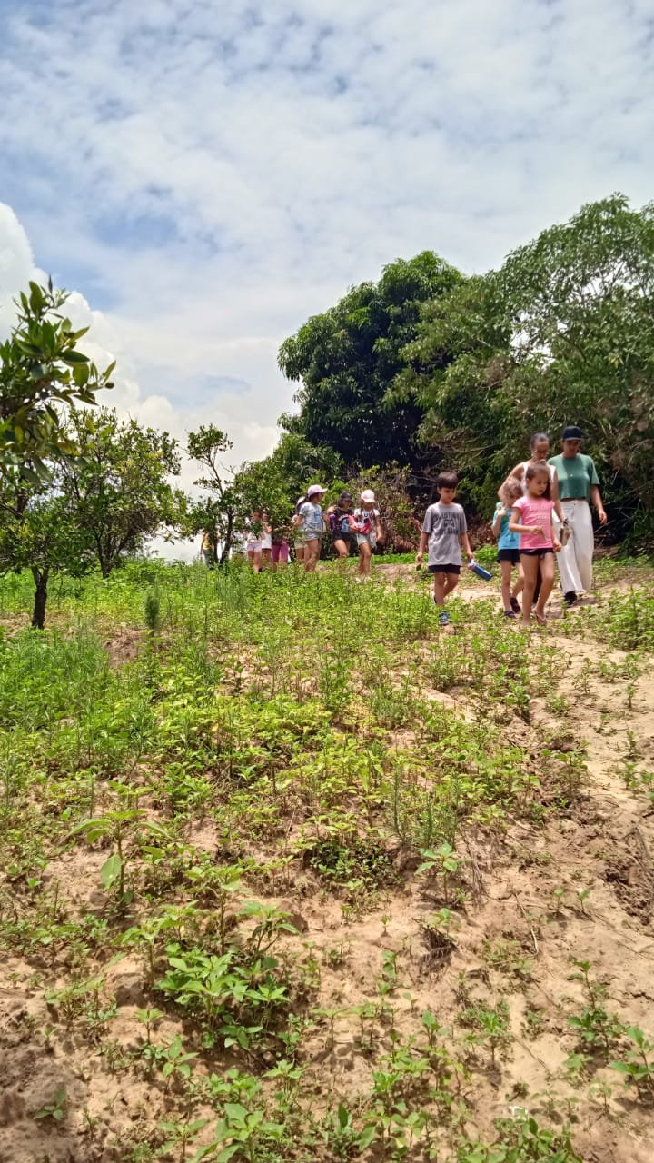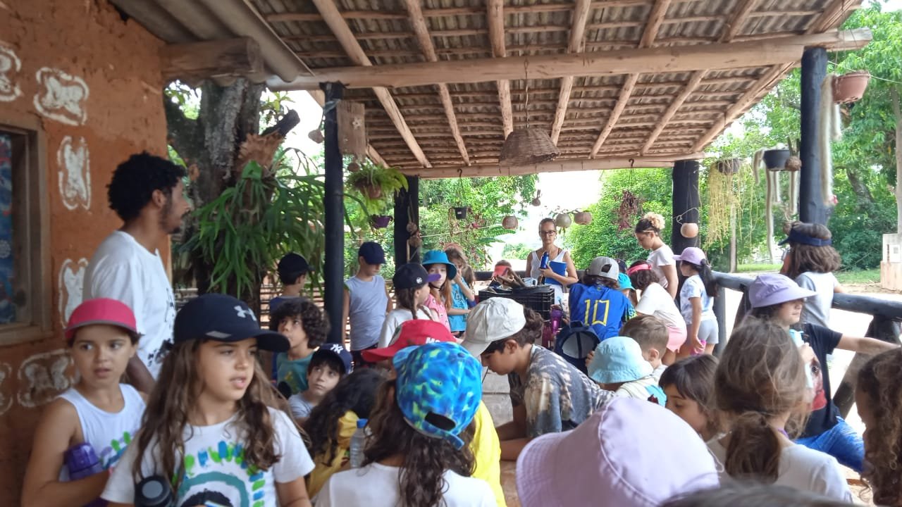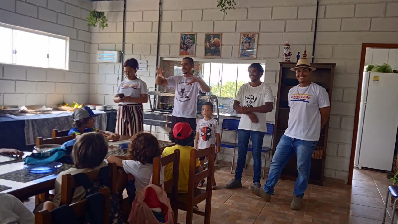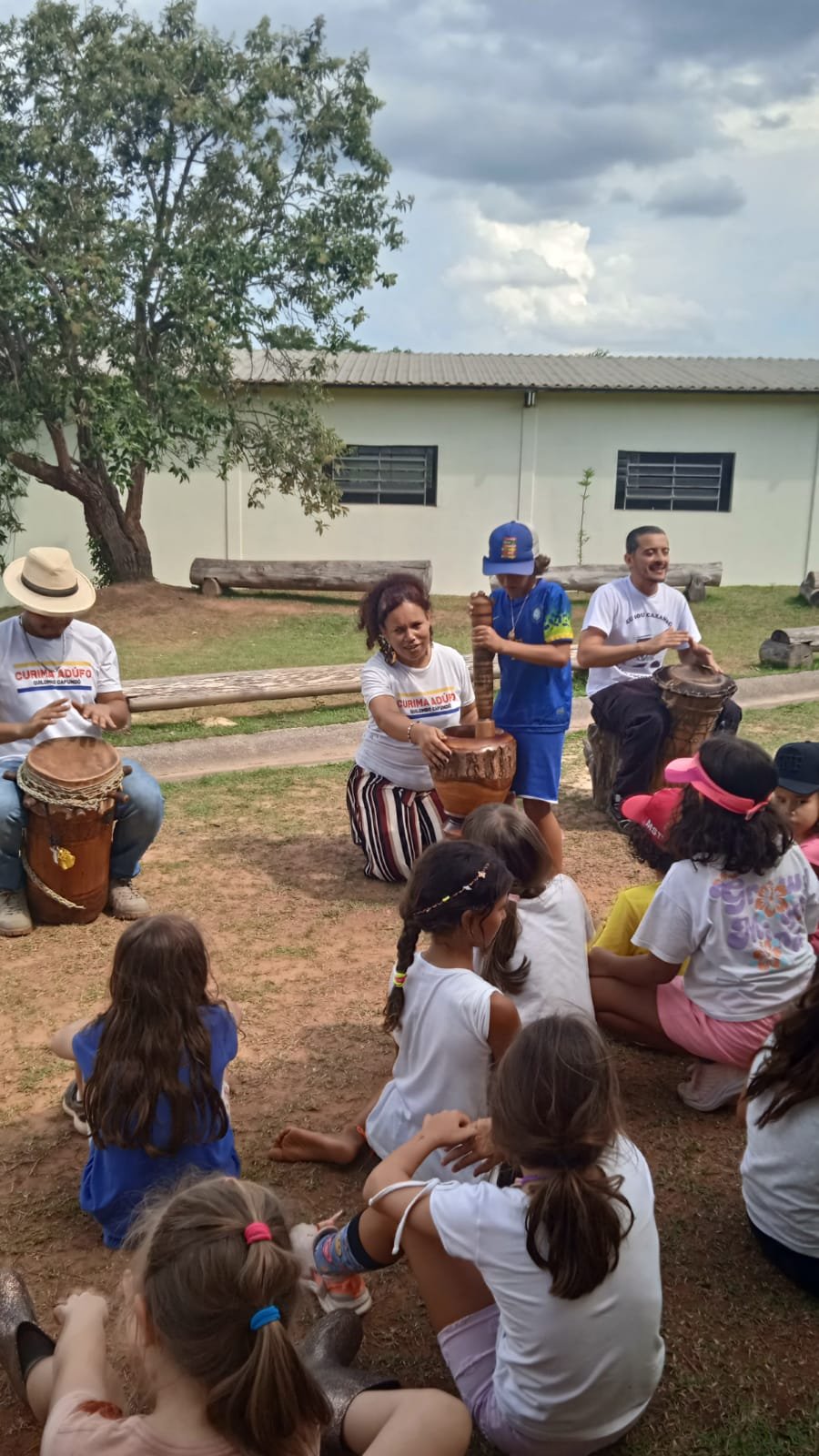 Durante o estudo, as crianças conheceram a história da comunidade, observaram as construções de pau-a-pique, conheceram o baobá presente há 14 anos, dançaram ao som dos tambores e provaram uma receita feita por eles de paçoca salgada.