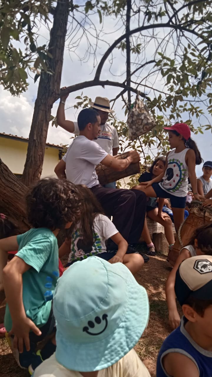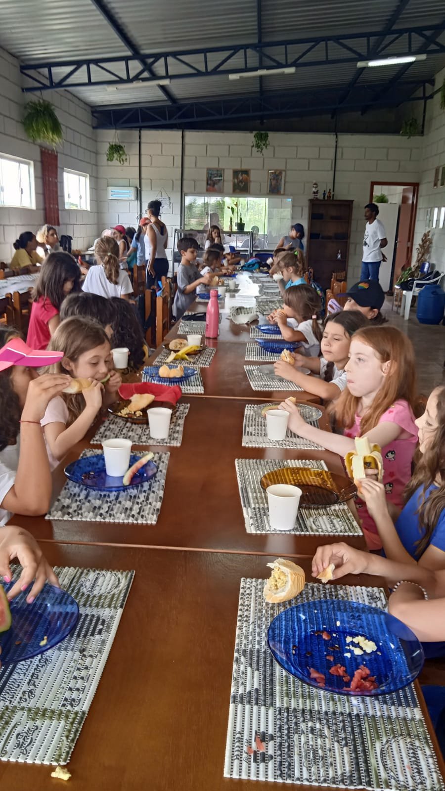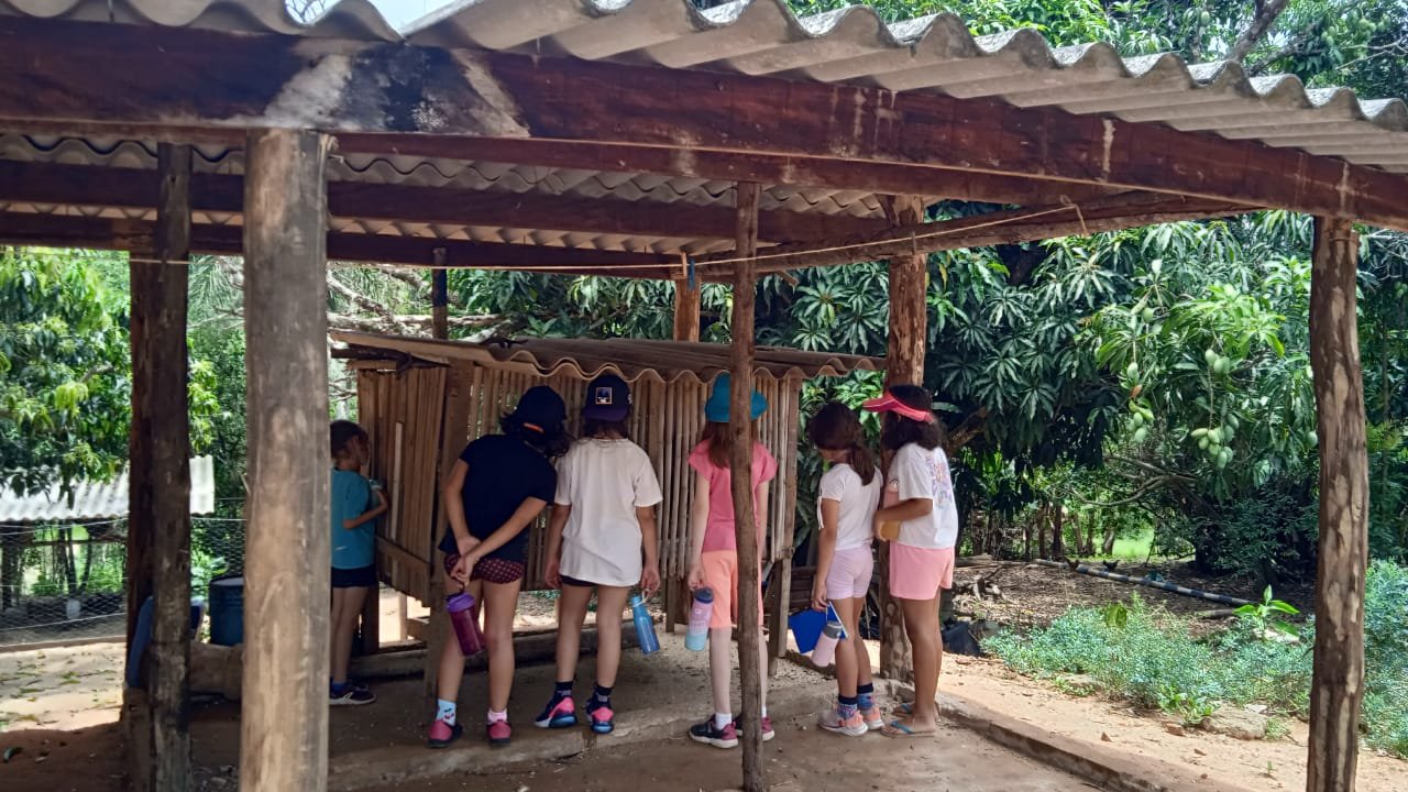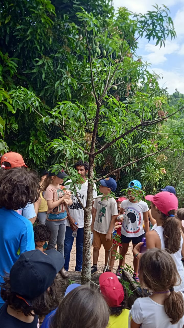 Durante o estudo, as crianças conheceram a história da comunidade, observaram as construções de pau-a-pique, conheceram o baobá presente há 14 anos, dançaram ao som dos tambores e provaram uma receita feita por eles de paçoca salgada.